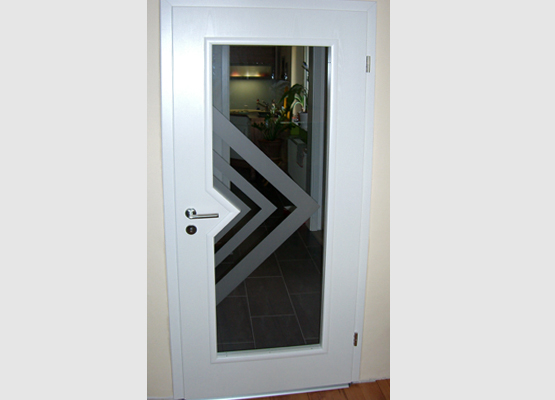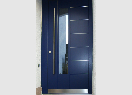 Haustür mit verspiegeltem Glas und Edelstahleinlagen